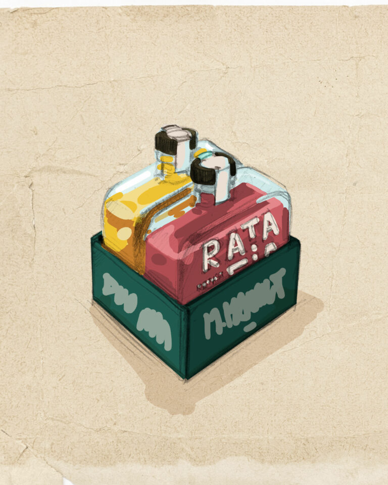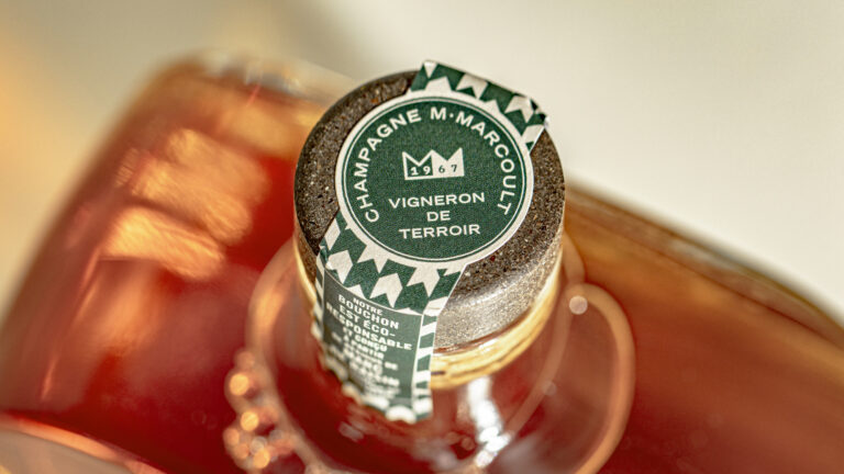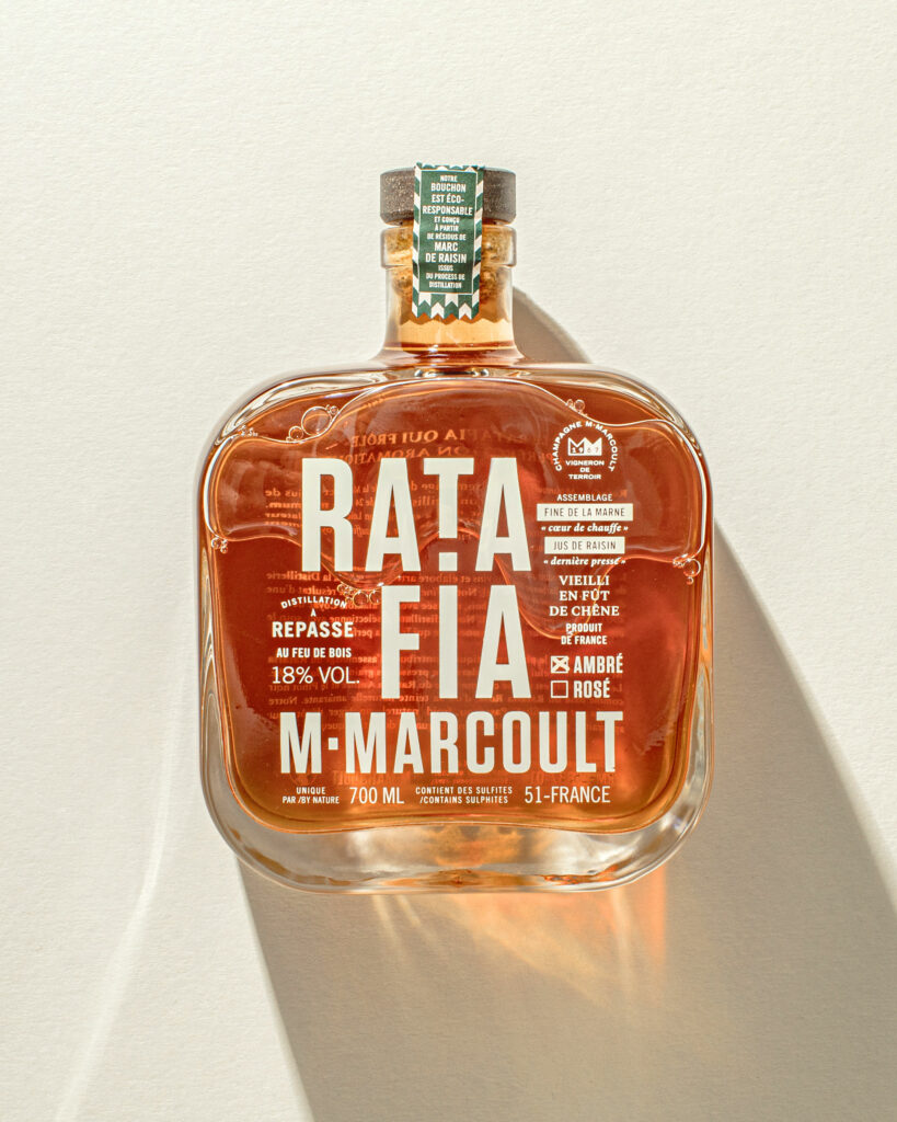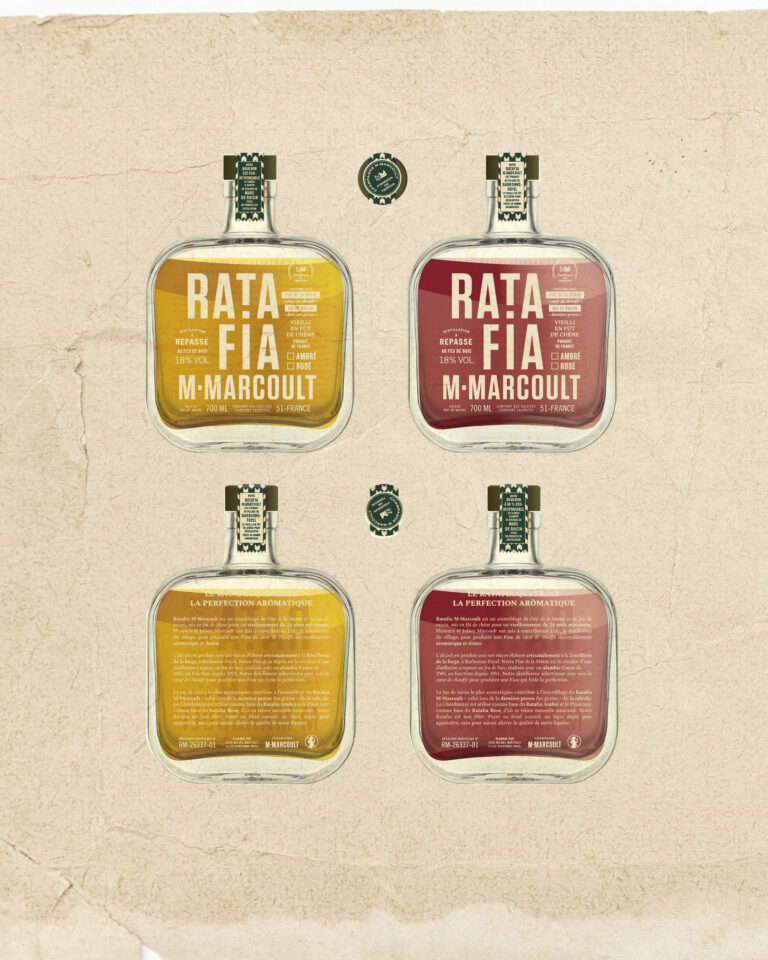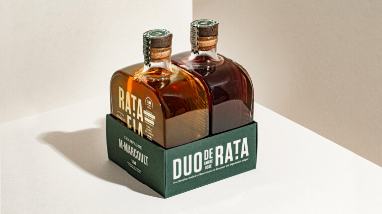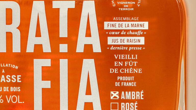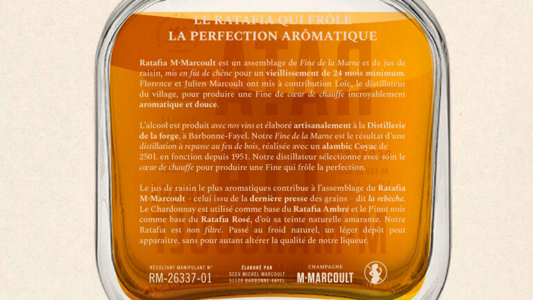 Suite au rebranding de leur champagne par nos soins, Florence et Julien nous confient la création de leur flasque de Ratafia, alcool artisanal ambré (Chardonnay) ou rosé (Pinot noir) dérivé du champagne. Une création à la Peaky blinders sérigraphiée directement sur le verre avec le greige emblématique de la marque champenoise