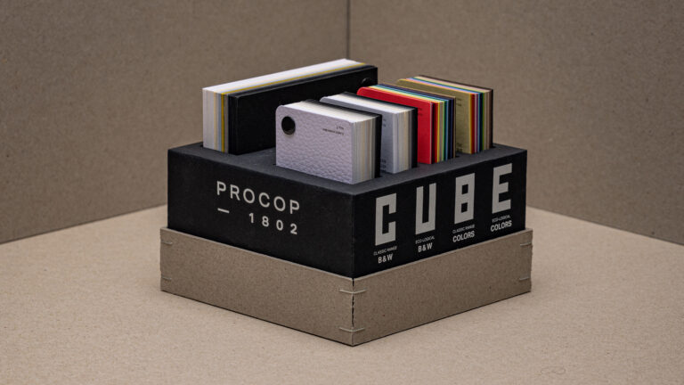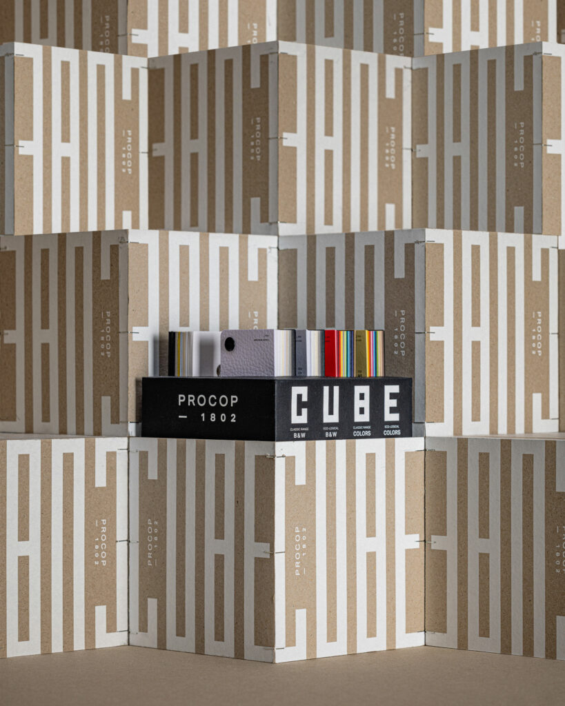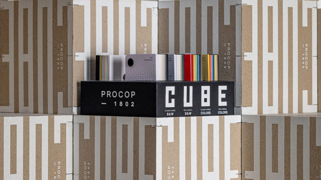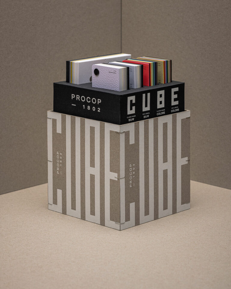 Procop nous confie la refonte de son guide papier. Le Cube devient une boîte-objet pour les pros du print. Au-delà des échantillons, chaque gamme permet d’interagir facilement avec d’autres supports ou de laisser une référence à son interlocuteur